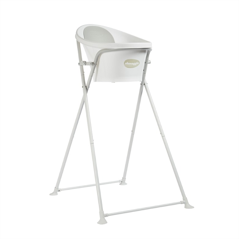 Сгъваемата стойка Shnuggle идеално допълва ваната Shnuggle! Тя повдига Вашето бебе на около 76 см от пода до кръста ви. По този начин не се навеждате и улеснявате самостоятелното къпане, без причинена болка в гърба след това.