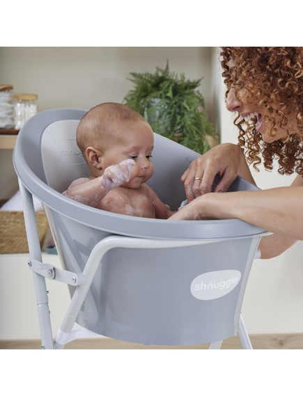 Shnuggle е внимателно проектиран, за да създаде сигурно и защитено място за къпане на Вашето бебе, което го прави по-удобно и приятно за бебчо и по-малко стресиращо за Вас - родителите.