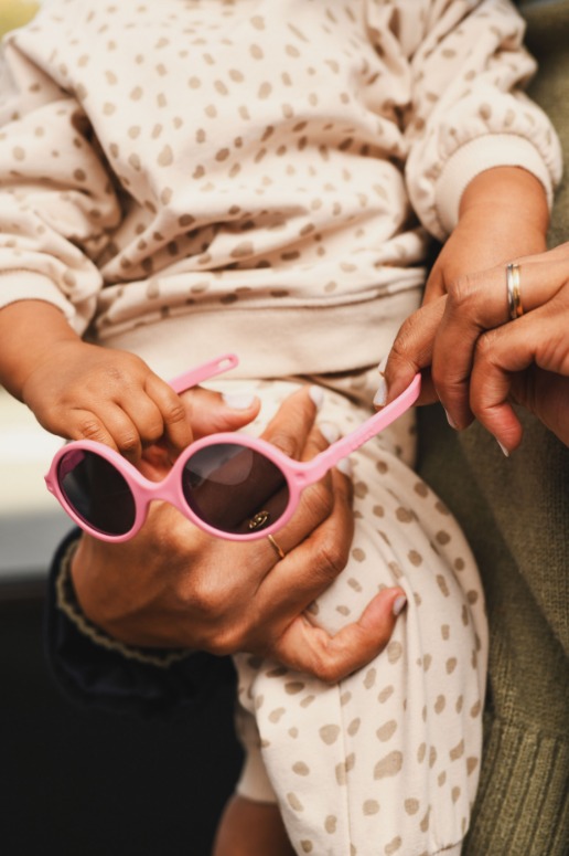 Към този модел очила има включена ластична лента, която да държи очилата на главичката на бебето.
