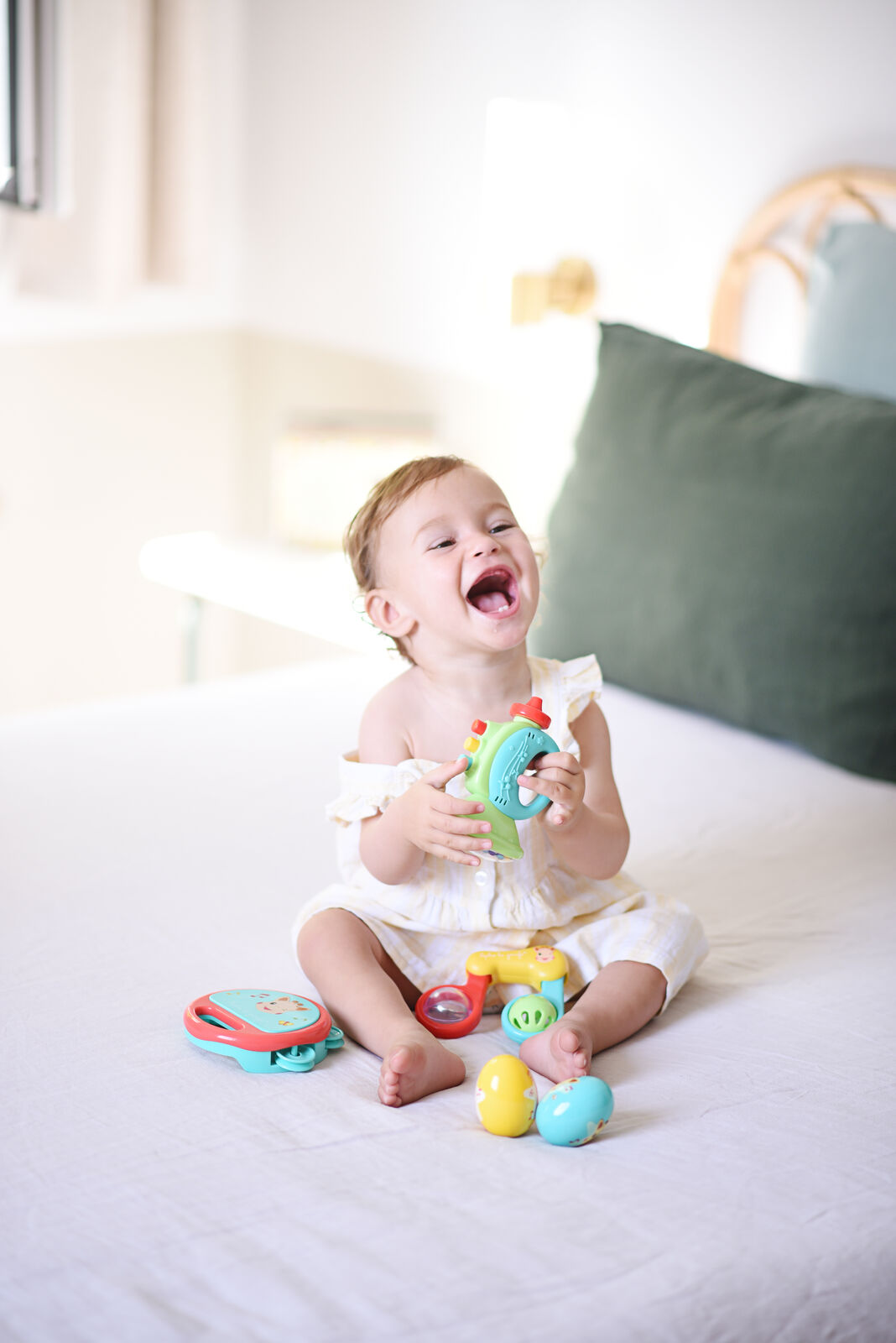 Докато бебето играе, то разпознава различни звуци, експериментира с ритми и развива своето музикално възприятие.
