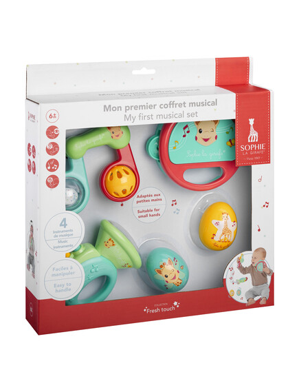 Комплектът „My First Music Set“ с жирафчето Софи е идеалният подарък, за да въведете вашето бебе в света на звуците, ритъма и творческата игра.