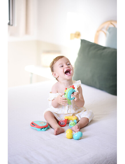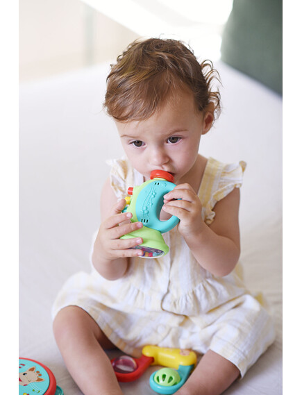 Ярките цветове привличат вниманието, звуците събуждат любопитството, а ергономичният дизайн помага на детето лесно да държи всеки инструмент, като така повишава увереността му.