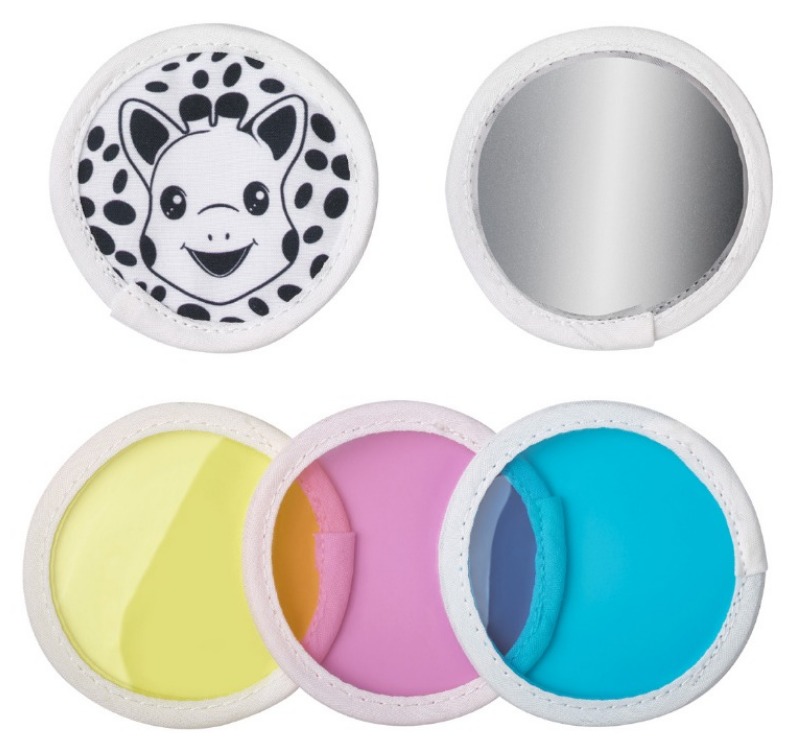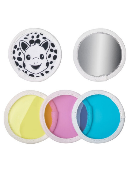 Зрението на бебето не е напълно развито при раждането, но то може да прави разлика между светлина и тъмнина. С течение на времето, зрението продължава да се развива и бебето започва да различава цветове и форми. На 6-7 седмици бебетата започват да се фокусират върху обекти и да ги наблюдават, а на 3-4 месеца те могат да разпознават лица и обекти и тяхното възприятие продължава да се развива. Огледалото на Софи е чудесна играчка, която помага на визуалното развитие на бебето. Бебетата са очаровани от собственото си отражение и обичат да прекарват времето си гледайки се в огледалото. Това им да помага да научат повече за себе си и да развият самосъзнание. Огледалата осигуряват визуална стимулация, която помага на бебетата да се научат да фокусират и проследяват обекти. Те също помагат с възприемането на дълбочината, тъй като бебетата разбират, че образът в огледалото е отражение на самите тях.