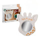 Тази революционна 2в1 гризалка и огледало се състои от гризалка, изработена от 100% естествен каучук и 4 сменяеми лещи за развитие на зрението на бебето с течение на месеците: