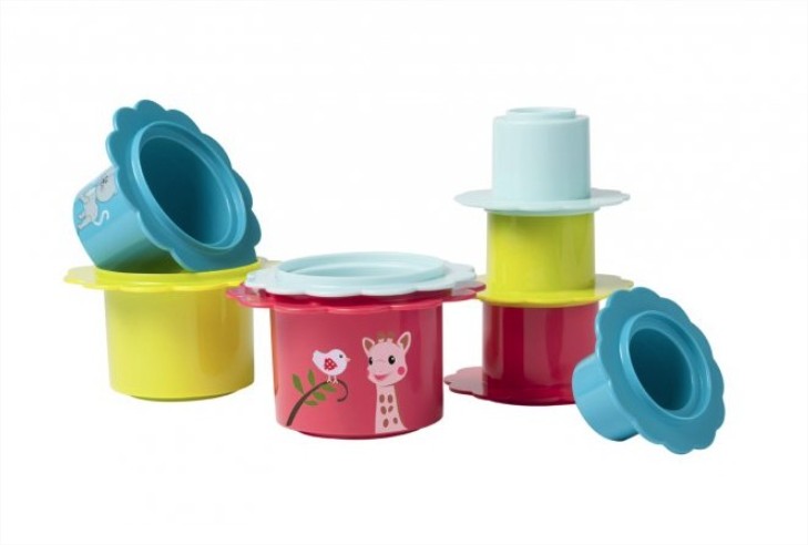 Бебетата обичат да редят предмети един върху друг. С тези цветя, бебето ви ще си играе с часове. Това са чаши във формата на цветя и с нарисувана Софи върху тях.