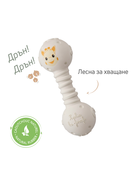 Чудесна дрънкалка от Софи Жирафчети, която ще стимулира сетивата на бебето и ще го забавлява в същото време !