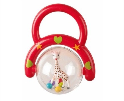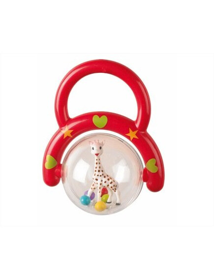 Благодарение на дръжката, бебето лесно може да я хване и да завърти топката, за да види как Софи жирафчето се върти и топчетата се раздвижват.