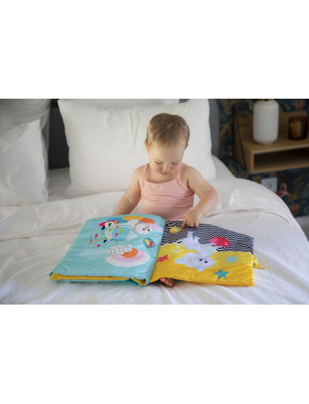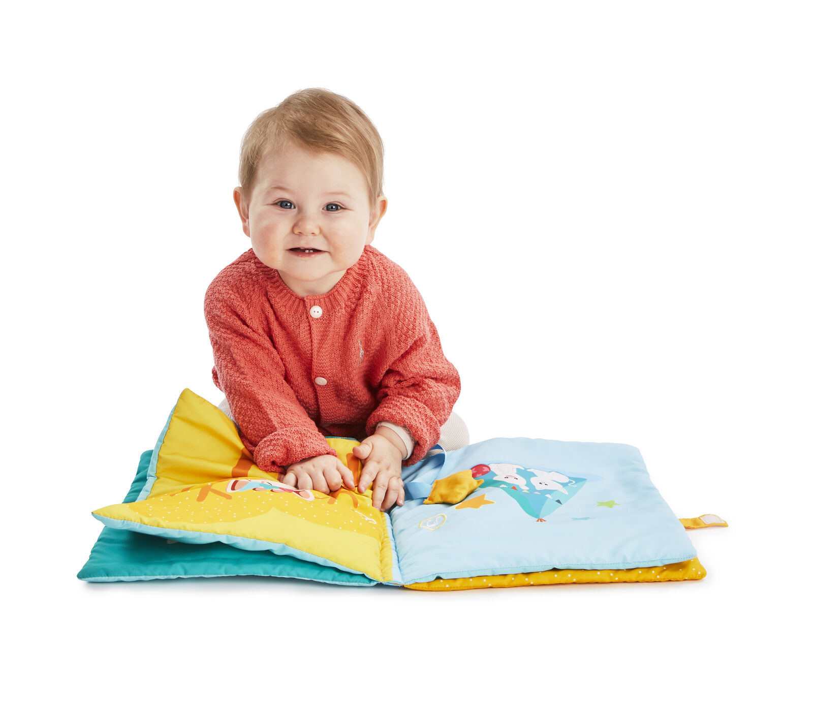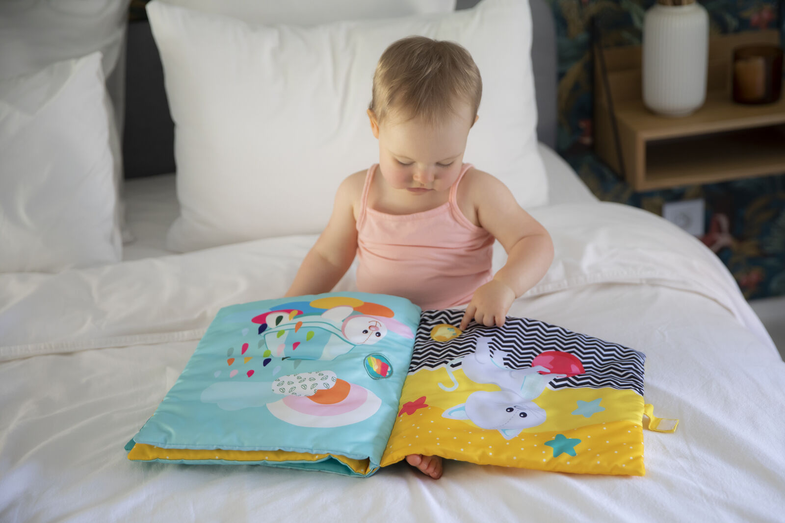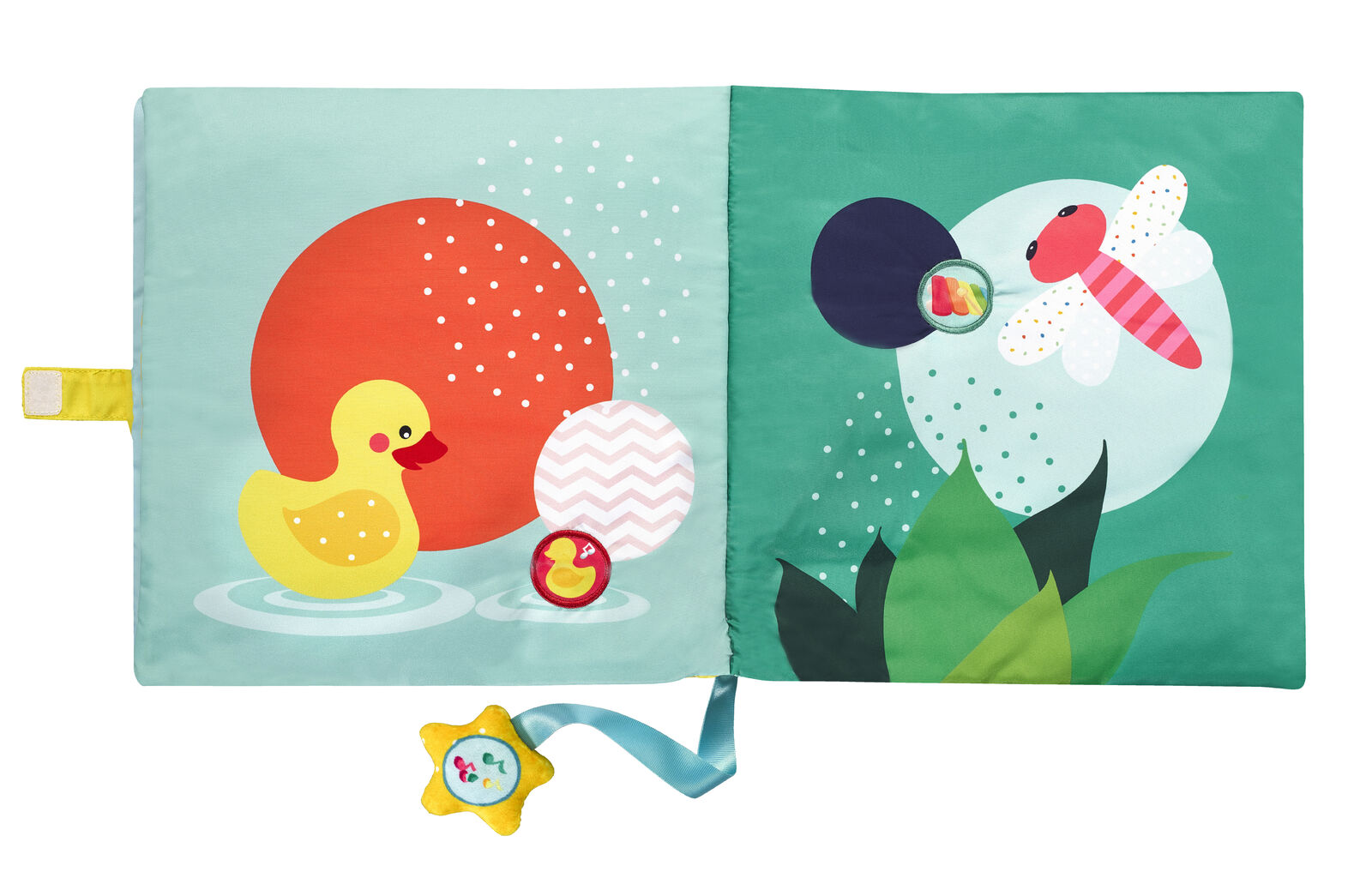 Всяка страница е проектирана да развива специфично сетиво и всяка има маркер, който стимулира сетивата на бебето.