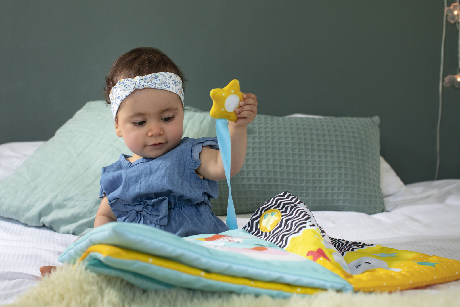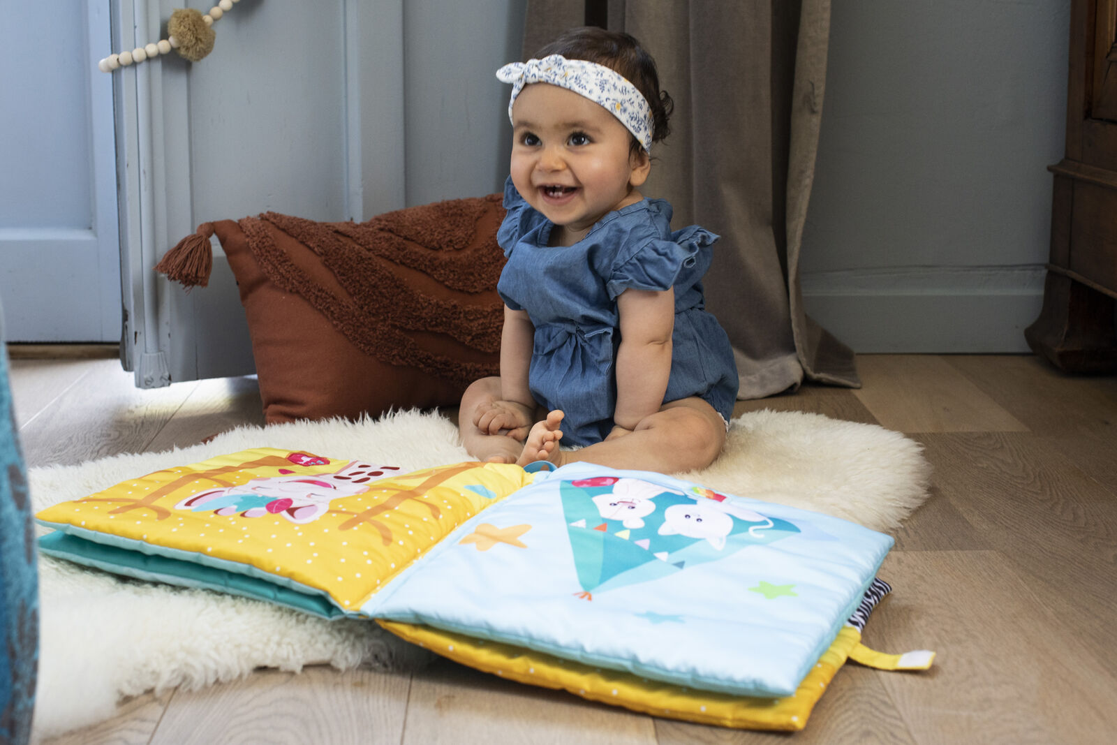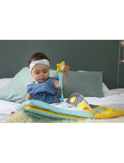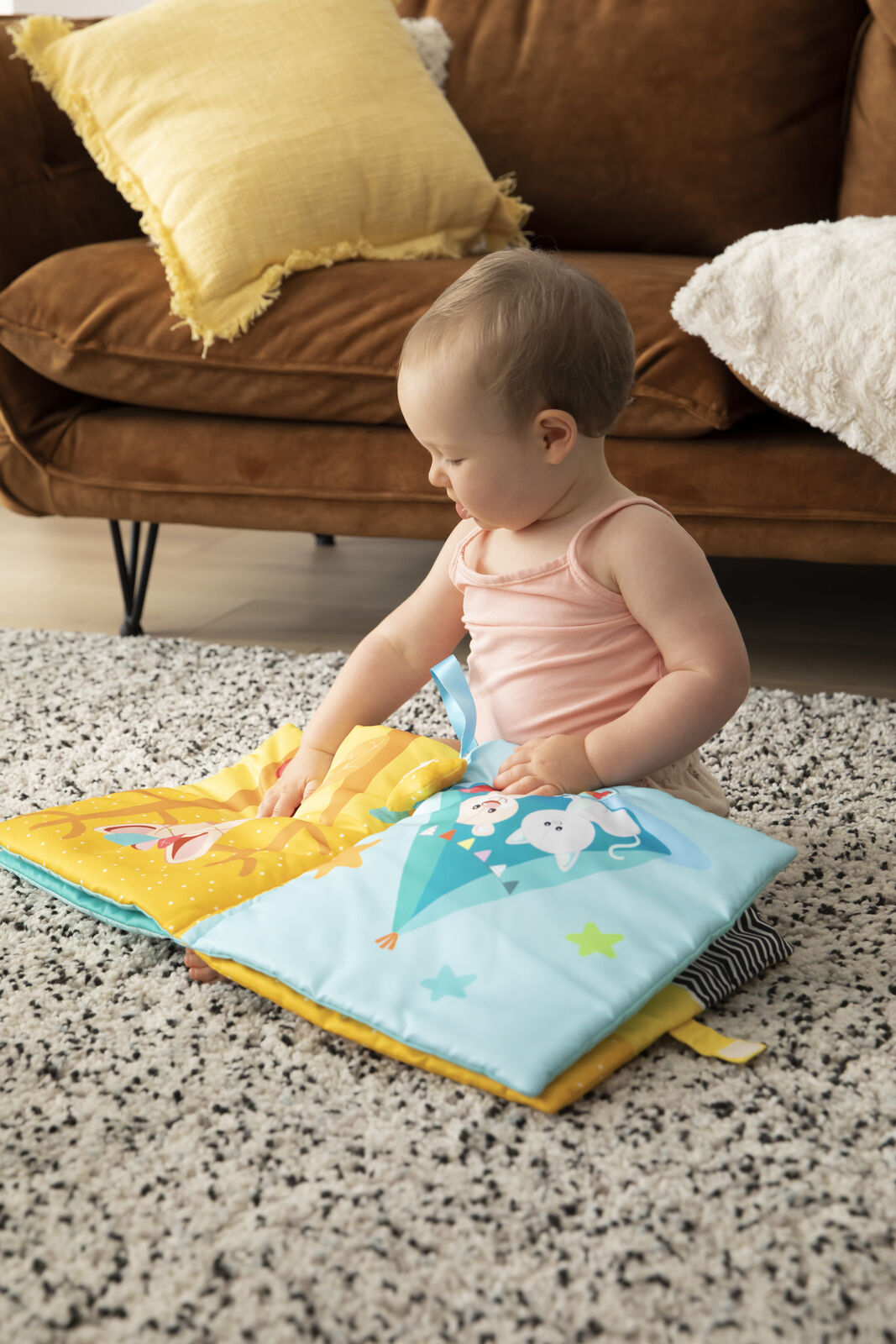 Всяка страница е проектирана да развива специфично сетиво и всяка има маркер, който стимулира сетивата на бебето.