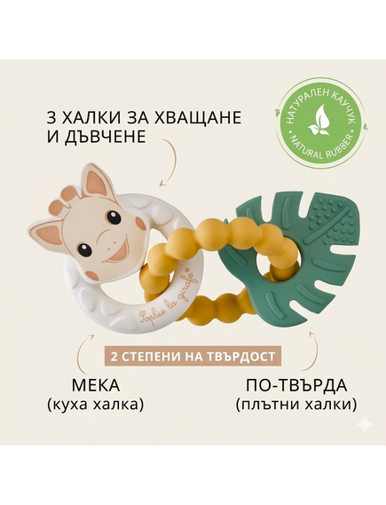 Комплектът от 3 гризалки от естествен каучук е създаден специално, за да помогне на бебето да премине по-леко през този период.