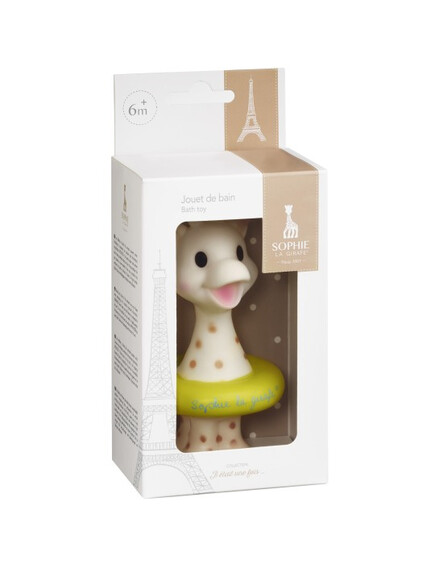 Забавна и безопасна играчка за баня, изработена от 100% естествен каучук и боядисана с бои на хранителна основа. Софи Жирафчето е идеален спътник за първите бани на вашето бебе, като стимулира сетивата и прави времето във водата още по-приятно.