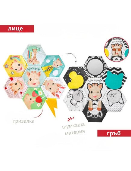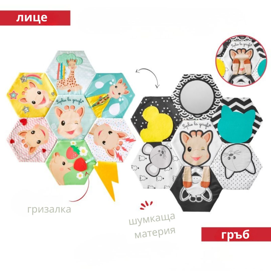 - Игра на „Ку-ку“: Скрито забавление със Софи и бебето, което предизвиква усмивки и развива вниманието.