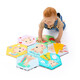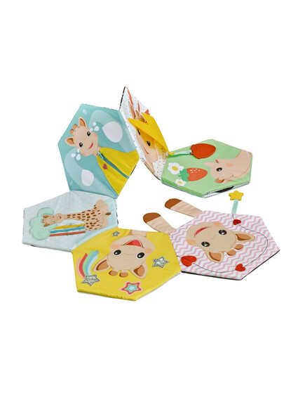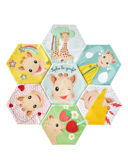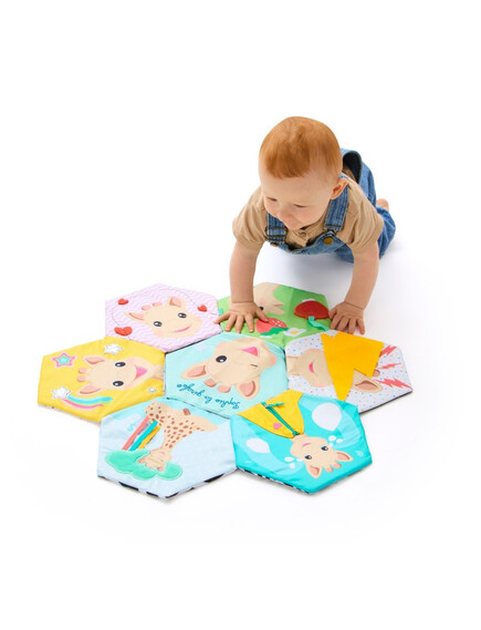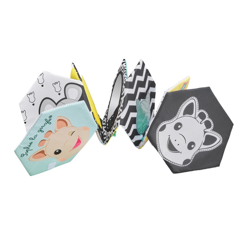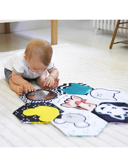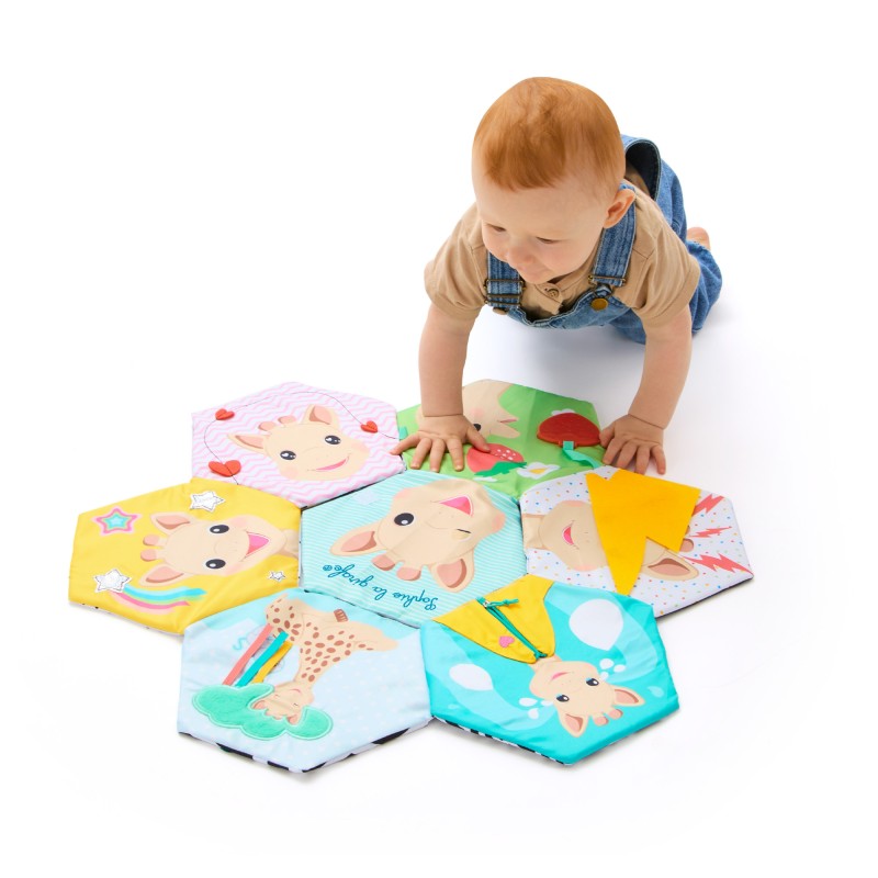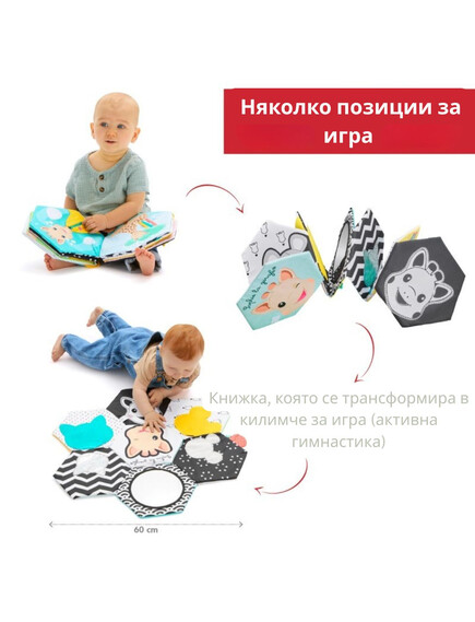 Открийте интерактивната текстилна книжка, която се разгръща в меко килимче за игра, изпълнено с над 10 сензорни активности.
