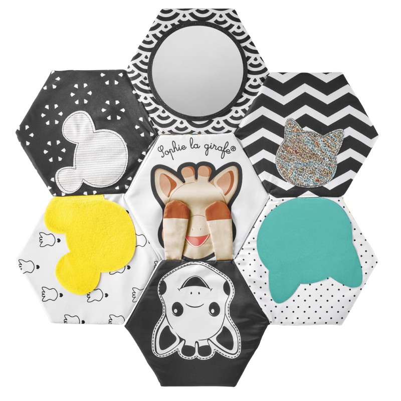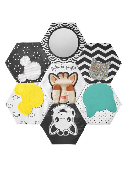 - Черно-бял контраст: Специално проектирана за най-малките (0+ месеца), за да стимулира зрението в първите седмици.
