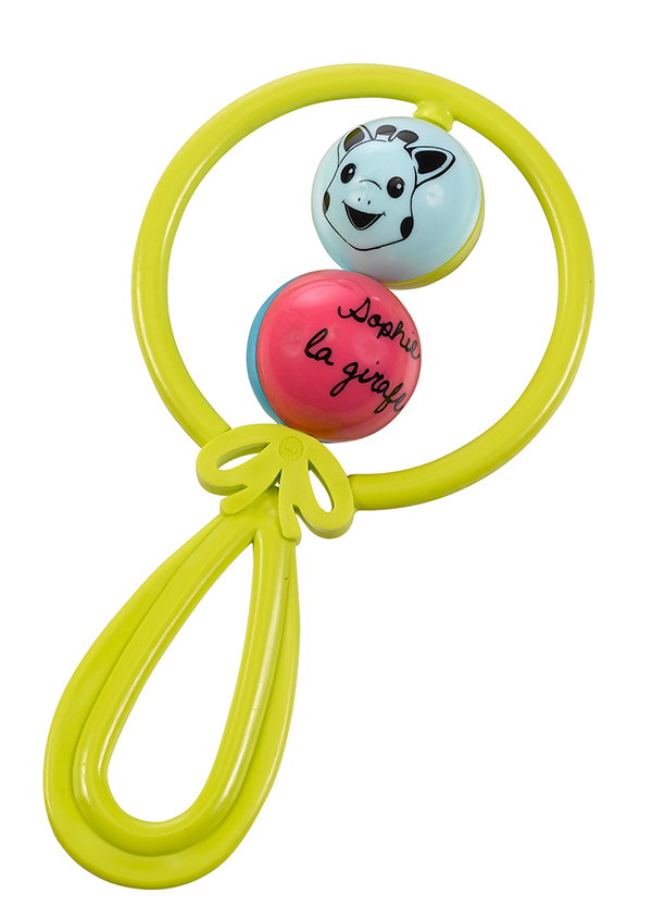 Има две топчета, които бебето може да върти, за да гледа как се смесват цветовете и как главата на Софи жирафчето се върти.