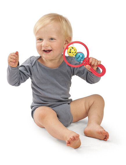 Лека и лесна за хващане. Идеална за мънички ръчички. Карайки дрънкалката да дрънчи, бебето ви, ще се забавлява много. А меките цветове и кръглите форми, ще го накарат да се влюби в дрънкалката.