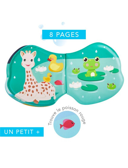 Разгръщайки книжката, бебето ще открие жирафчето Софи и нейните приятели в 3 различни водни свята • океана • ледниците • езерото.