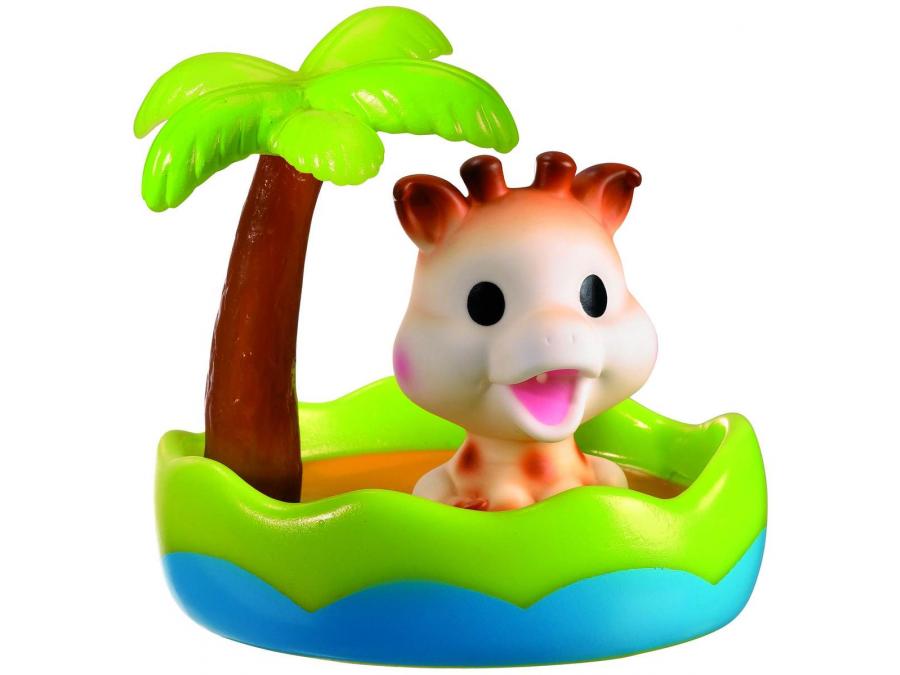 - Оазисът на Жирафчето Софи: Носи се по вода и помага на бебето да измисля истории, докато играе. Софи влиза и излиза. Става за играчка за баня, която изхвърля вода при натиск.