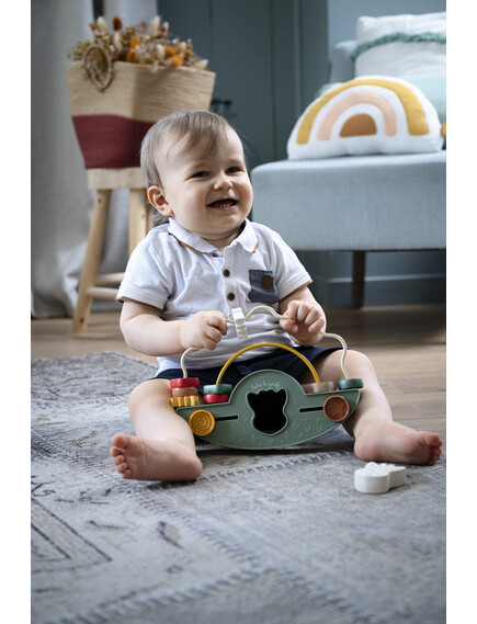 Играчка, която вълнува: Люлеещото се сметало помага за развитието на сръчността на ръцете, прецизността и координацията око-ръка, докато нашите малки приятели развълнувано движат цветните мъниста. Всяко движение събужда любопитството и въображението им, създавайки сладки моменти на игра и открития!
