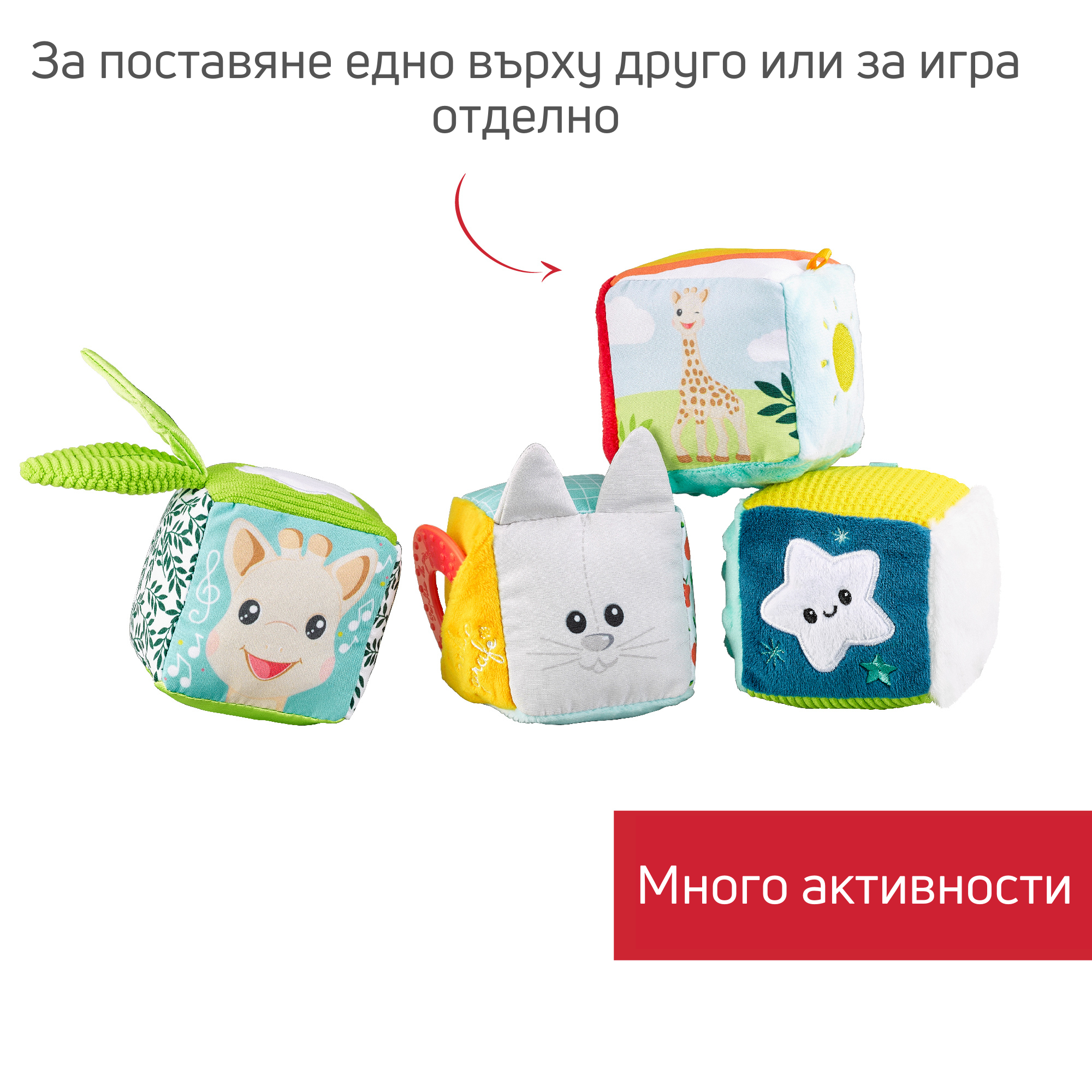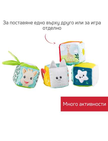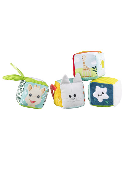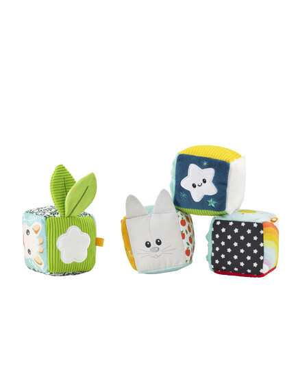 Това са 4 меки кубчета в различни цветове и текстури, които бебето може да хваща, реди и да си играе поотделно.