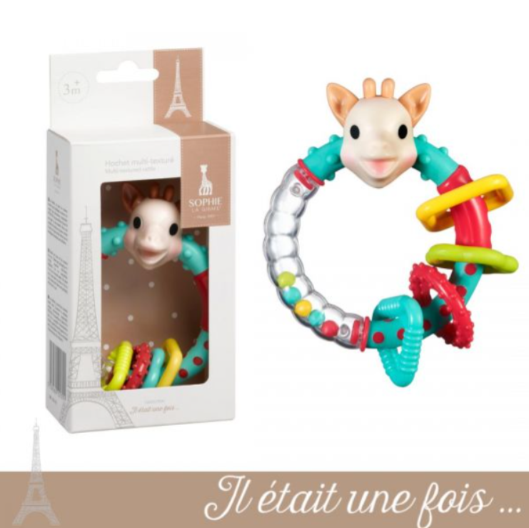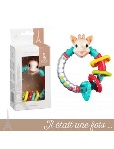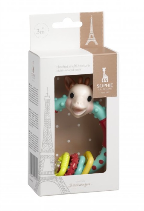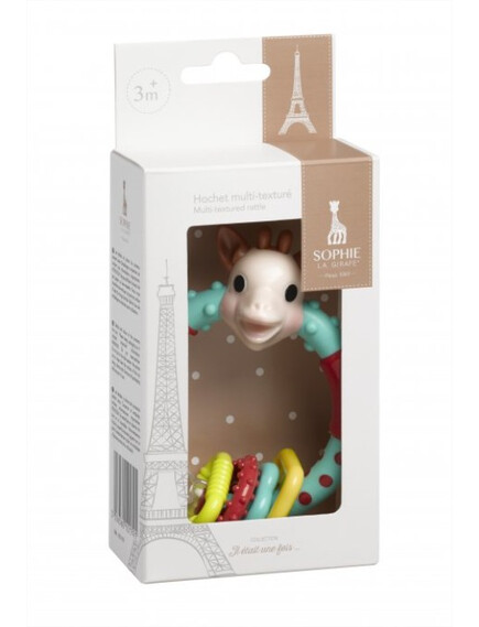 Многоцветна дрънкалка Sophie la girafe 2 в 1 е едновременно дрънкалка и гризалка.