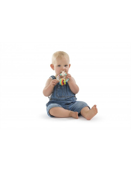 Ярки цветове, за да привличат вниманието на бебето, меки и твърди материали за гризкане, които успокояват възпалените венци на бебето.