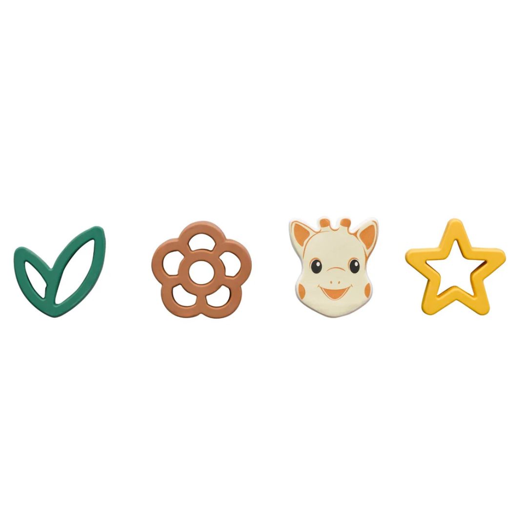 ✔ Включва 4 елемента от 100% естествен каучук – идеални за никнещи зъбки
