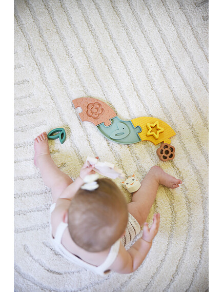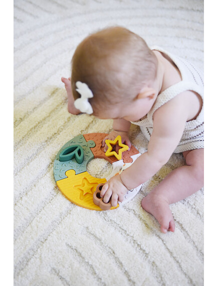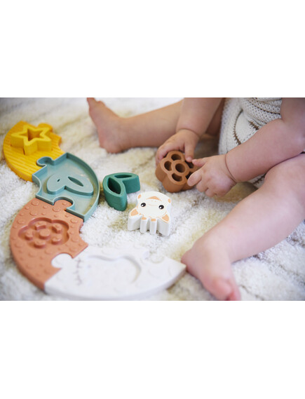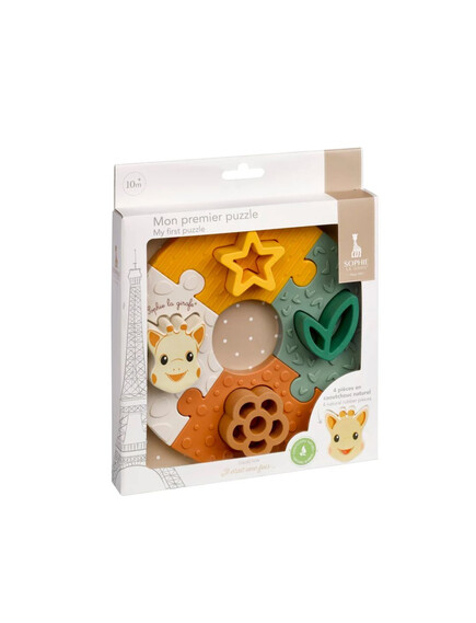 „Моето първо пъзелче със Софи“ съчетава забавлението от първия пъзел с облекчение при никнене на зъбки. Меките гумени части са перфектни за гризане, а пъзелът развива логическото мислене и фината моторика. Прекрасна идея за подарък, която ще зарадва както родителите, така и малчуганите!