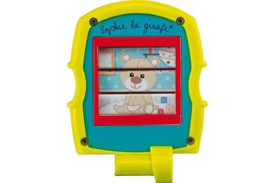 -Прикачен капак за отваряне и затваряне, който при отваряне и затваряне кара картинката на екрана да се сменя. Трите картинки които се сменят са - мишката Жозефин, мечокът Габин, и Софи жирафчето.