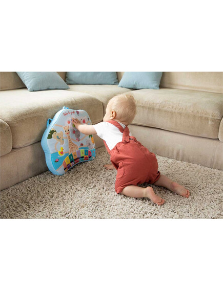 Независимо дали я държите на земята, на колене или закачена на креватчето или в столчето за кола, бебето ще открие многобройните й дейности. Благодарение на конструкцията от пяна, играта е напълно безопасна.