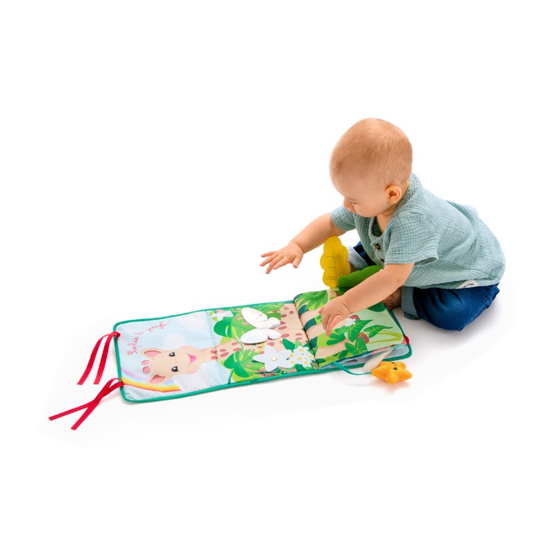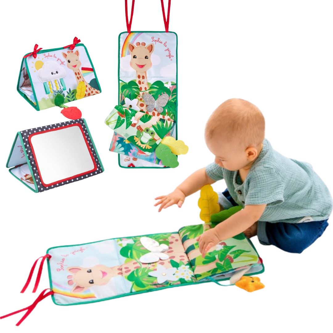 Разтегателната книжка‑стойка е създадена, за да стимулира сетивата и развитието на вашето бебе още от първите месеци. Три игрови позиции, адаптирани за растежа и нуждите на детето, превръщат всяко откриване в приключение.
