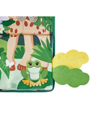 - Разгъната позиция: Бебето тръгва на приключение през 3 свята: джунглата, морето и планините. Характеристиките включват ярки цветове, блестящи материи, разнообразие от тъкани (филц, кадифе, трико...) и елементи за манипулиране: топчета за местене, звънче, шумоляща хартия и др. Перфектно за събуждане на сетивата и стимулиране на фината моторика, докато бебето се забавлява!