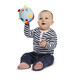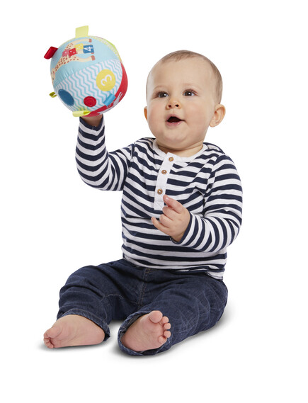 Ярките й цветове ще привлекат вниманието на бебето, различните меки материали ще стимулират докосването на бебето, звуците вътре в топката ще го забавляват, когато играе или разклаща топката! Кръглата му форма е лесна за хващане от малки ръце!