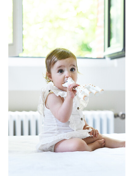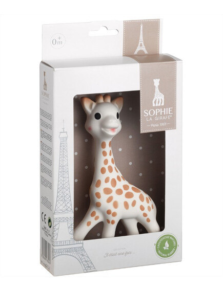Вашето Жирафче Софи е уникално! Има номер и ръчно рисуваните му петна могат да варират от един модел на друг. Защото ние знаем, че всяко бебе е уникално, затова и всяко жирафче е различно! Продавано по целия свят, той съпътства растежа на милиони бебета и повече от 60 години е безспорен bestseller за най-малките.