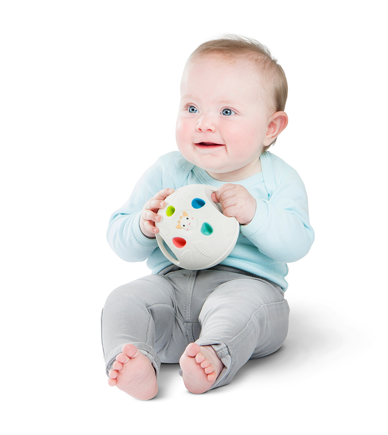 С ярки цветове и разнообразие от форми тя помага на вашето бебе да развие сетивата зрение и осезание.