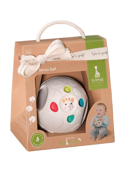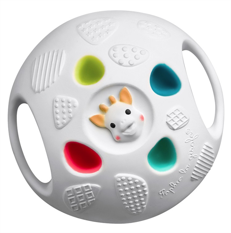 Софи жирафчето топка, която стимулира сетивата на бебчо е изработена от 100% естествена гума.
