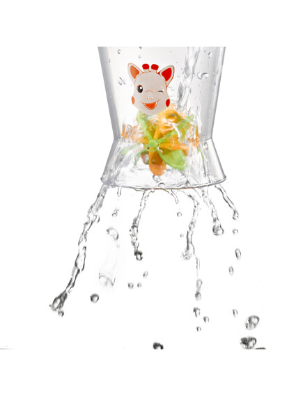 Перфектна играчка за баня от Жирафчето Софи, която едновременно ще забавлява и развива двигателните умения на бебето!