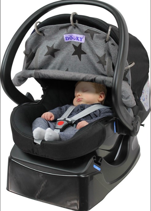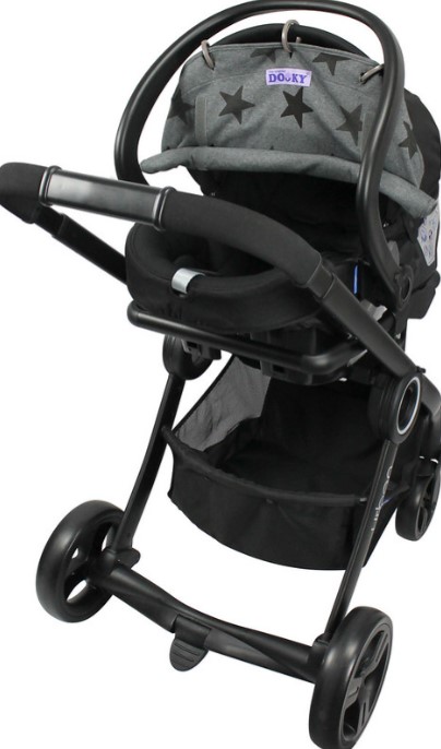Сенника Dooky се поставя за секунди върху всички колички и столчета за кола с наличните пръстени.