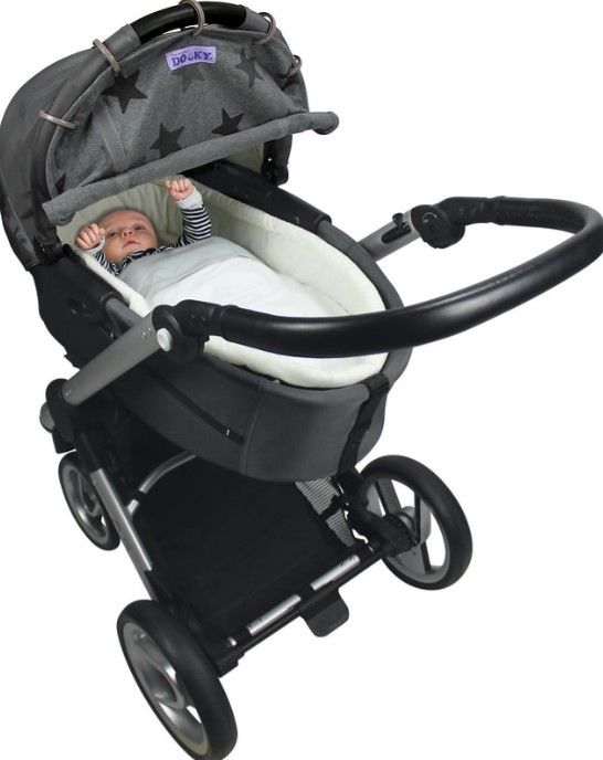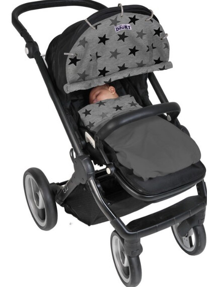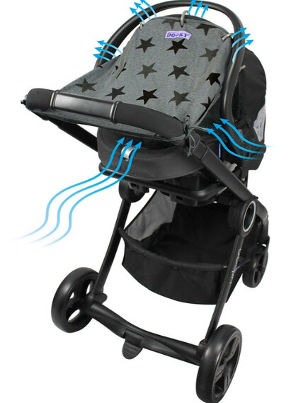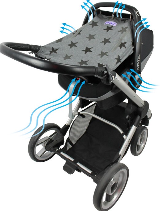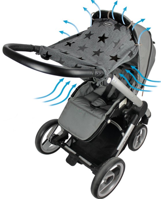 Точно за това UV сенникът на Dooky e отговорът. Изработен е от 100% памучна дишаща материя (която създава подходяща вентилация) със защита срещу слънцето UPF50 +, която блокира повече от 95% от вредните UVA и UVB лъчи и се смята за отличнa UV защита. Тяхната основна особеност са пръстените, с които много лесно се връзват на количката или на столчето за кола.