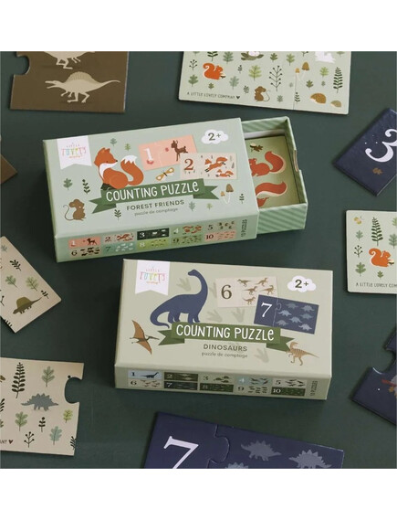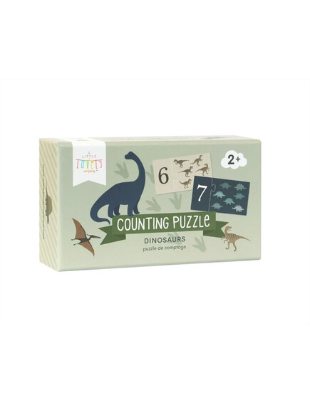Научете се да броите от едно до десет с този прекрасен комплект от любимите ни динозаври от A little lovely company! Включва 10 индивидуални пъзела, с число от едната страна и динозаври и картинки, които да преброите от другата. Образователна и забавна игра, изработена от дебел картон, така че малките ръчички да могат лесно да боравят с нея.