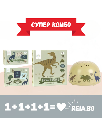 СПЕЦИАЛНА ОФЕРТА: A little lovely company "Динозаври": Пъзел - игра за броене + Мемори настолна игра + Пъзел - мозайка + Детска лампа прожектор
