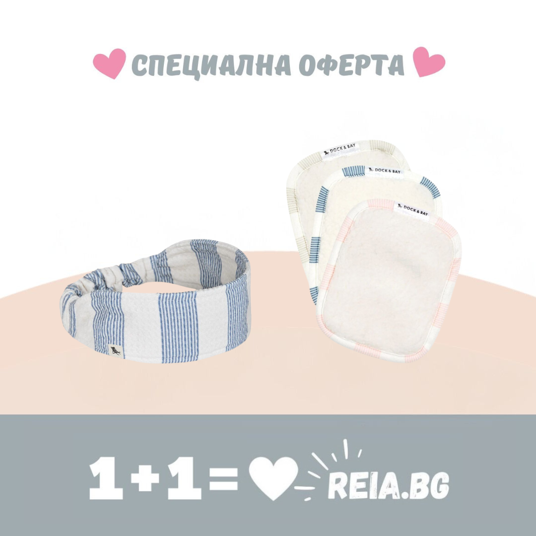 СПЕЦИАЛНА ОФЕРТА: Dock & Bay - Козметична лента за коса + Dock & Bay: Кърпи за лице (3 броя) 12x10см