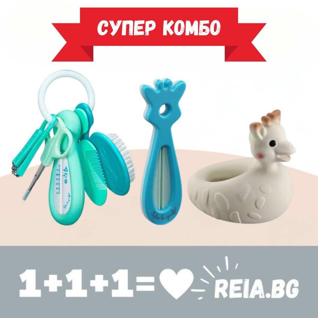 СПЕЦИАЛНА ОФЕРТА: Софи жирафчето - Комплект за грижа и хигиена + Софи жирафчето термометър за баня + Софи жирафчето Играчка за баня So pure