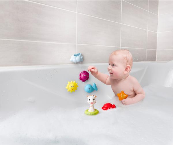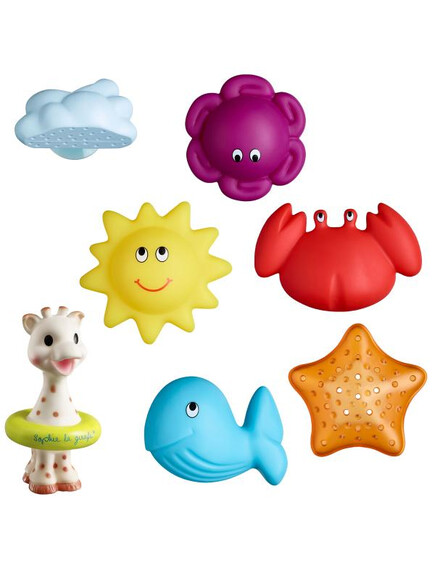 - 1 "Софи жирафчето" Играчка за баня плуваща и пръскаща играчка, която се използва за игра на бебето по време на къпане.