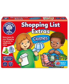 Разширение за настолна игра "Списък за пазаруване" - Пакет с дрехи След големия успех на настолната игра "Списък за пазаруване", Orchard Toys, създадоха разширение към нея. Време е да отидете да на шопинг за дрехи! Играта помага на децата да развият уменията си за напасване , да...