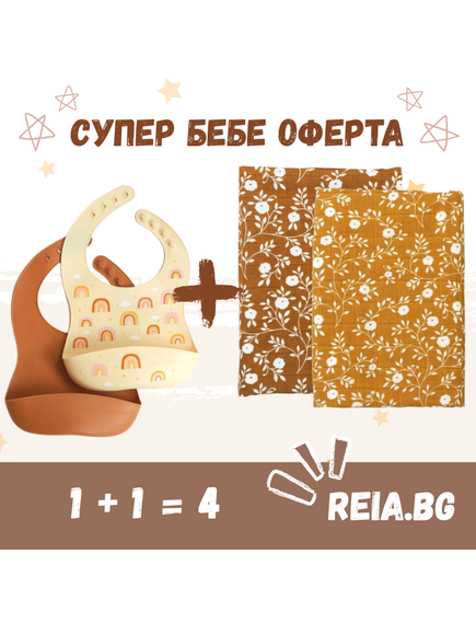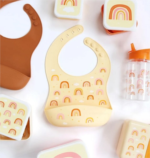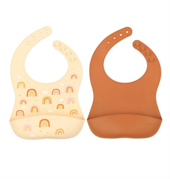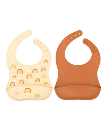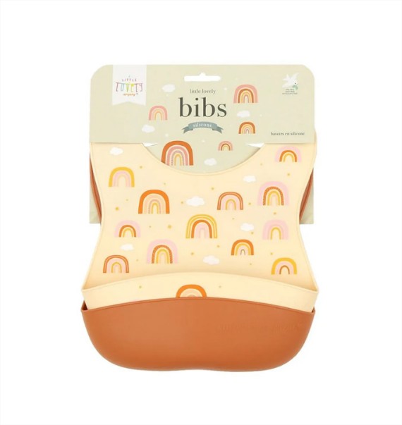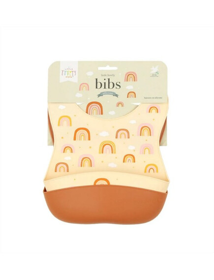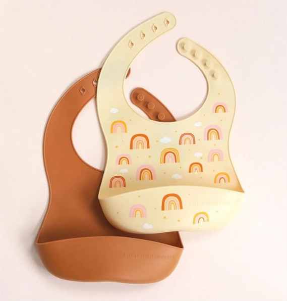 Супер Бебе Комбо: A Little Lovely Company: Силиконови лигавници Rainbows 2 бр + Комплект от 2 бр. муселинови пелени Caramel