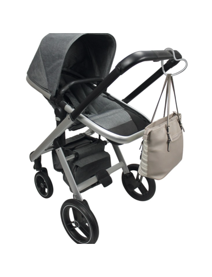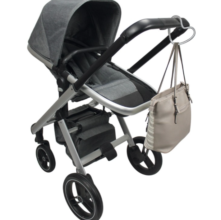 Семпла и практична кука от Dooky Original, на която може да закачите своите неща, като чантата за бебешки аксесоари, пазарски чанти или раници, и да имате директен достъп до тях.