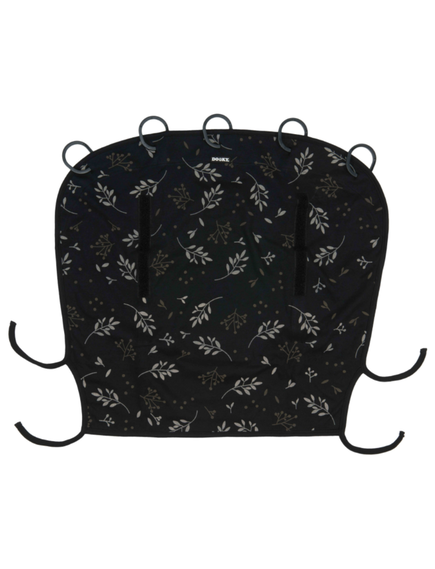 Точно за това UV сенникът на Dooky Original e отговорът. Изработен е от 100% памучна дишаща материя (която създава подходяща вентилация) със защита срещу слънцето UPF50 +, която блокира повече от 95% от вредните UVA и UVB лъчи и се смята за отличнa UV защита. Тяхната основна особеност са пръстените, с които много лесно се връзват на количката или на столчето за кола.