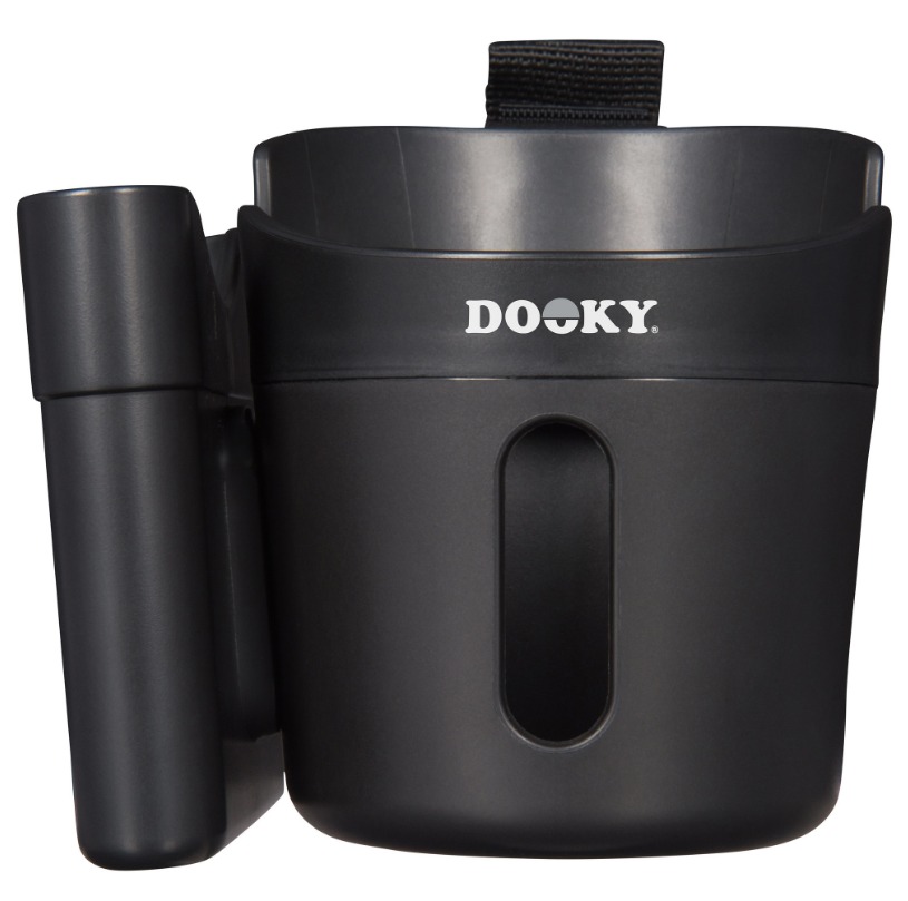 Направете разходката си с количка с пъти по-удобна без да държите мобилния си телефон и напитки в ръка с поставката за чаша 2 в 1 на Dooky!