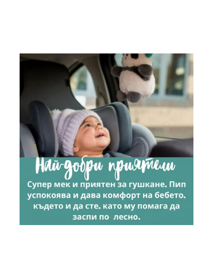 С велкро лента, за да го закачите на количката, столчето за кола, на активната гимнастика, в колата и дори на бебешката чанта!